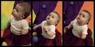Ohhh what a lovely baby!! I love these pics, they are so funny!! I really like the pics with books, but my favourites are with the tutu, and I love her face in the last one, the cowgirl!! she is a pretty model! good job Alexz!!
